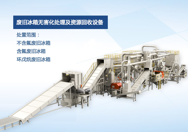 公司自主研發(fā)的廢舊冰箱無害化處理及資源回收技術(shù)及設(shè)備, 獨(dú)具 “雙軸撕碎機(jī)+立式破碎機(jī)+大風(fēng)量稀釋環(huán)戊烷氣體”的專利組合設(shè)計, 主要用于對廢舊冰箱中的各種原材料進(jìn)行分離、 回收和利用, 具有自主知識產(chǎn)權(quán), 經(jīng)國家工業(yè)和信息化部科技成果鑒定為 “填補(bǔ)國內(nèi)空白, 達(dá)到國際先進(jìn)水平” 。